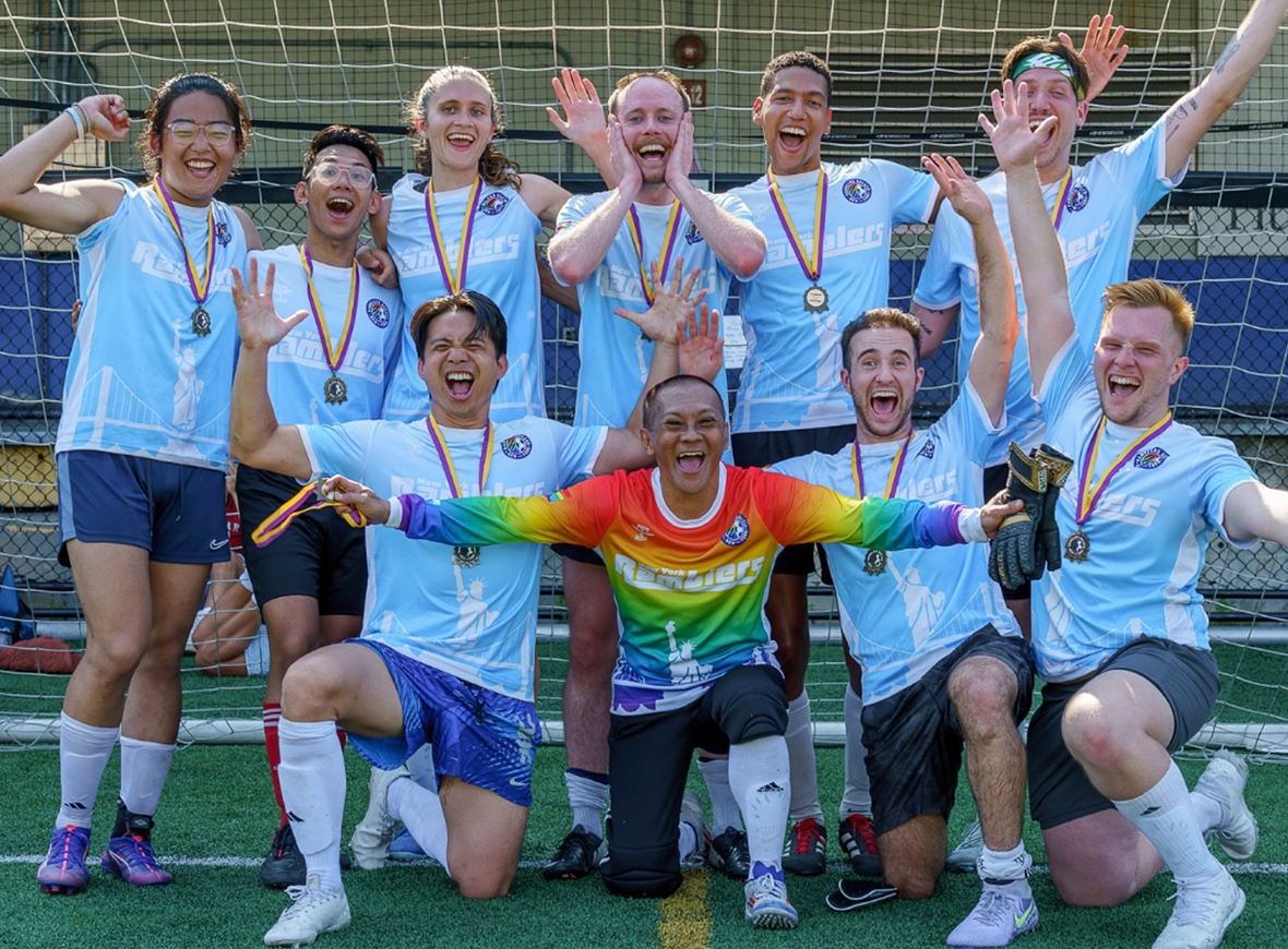 The annual Pride Cup, hosted by the NY Ramblers, is an LGBTQIA+ inclusive, all-gender, outdoor soccer tournament in New York, NY. The tournament is setup as a blind draw from free agent registrants so you are bound to make new connections!